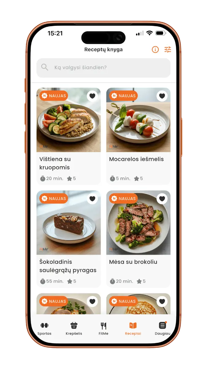 Visi FitMe receptai yra greitai ir lengvai pagaminami, tačiau tuo pačiu puikiai subalansuoti, kad užtikrintų tau reikalingų maistinių medžiagų kiekį.